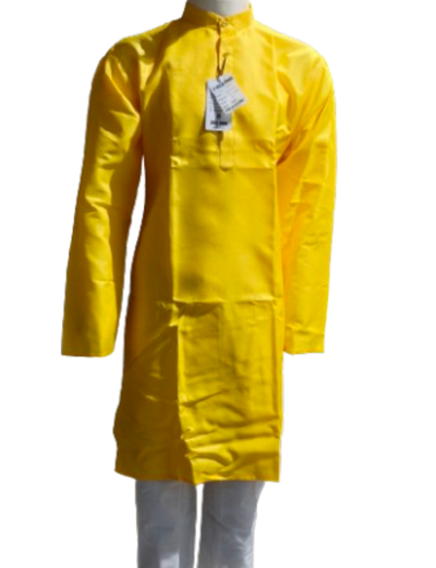 Brighten up your ethnic wardrobe with the Bela Park Men’s Yellow Jacquard Kurta, designed to bring a touch of sophistication and tradition to your festive look. Crafted from premium jacquard fabric, this kurta features a subtle woven texture that adds richness and depth to its vibrant yellow shade. The mandarin collar, paired with elegant pearl-style buttons, enhances its royal charm, making it perfect for festive celebrations, Haldi ceremonies, cultural events, and weddings.