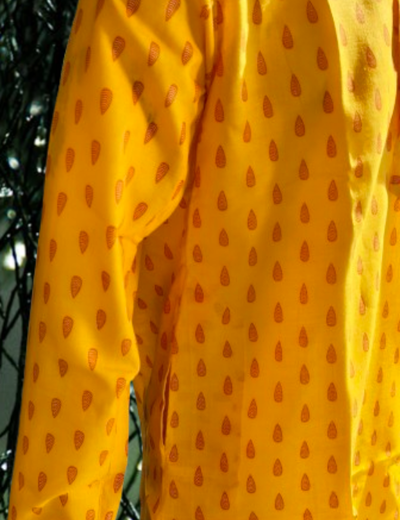 Color: Bright Yellow with festive printed motifs